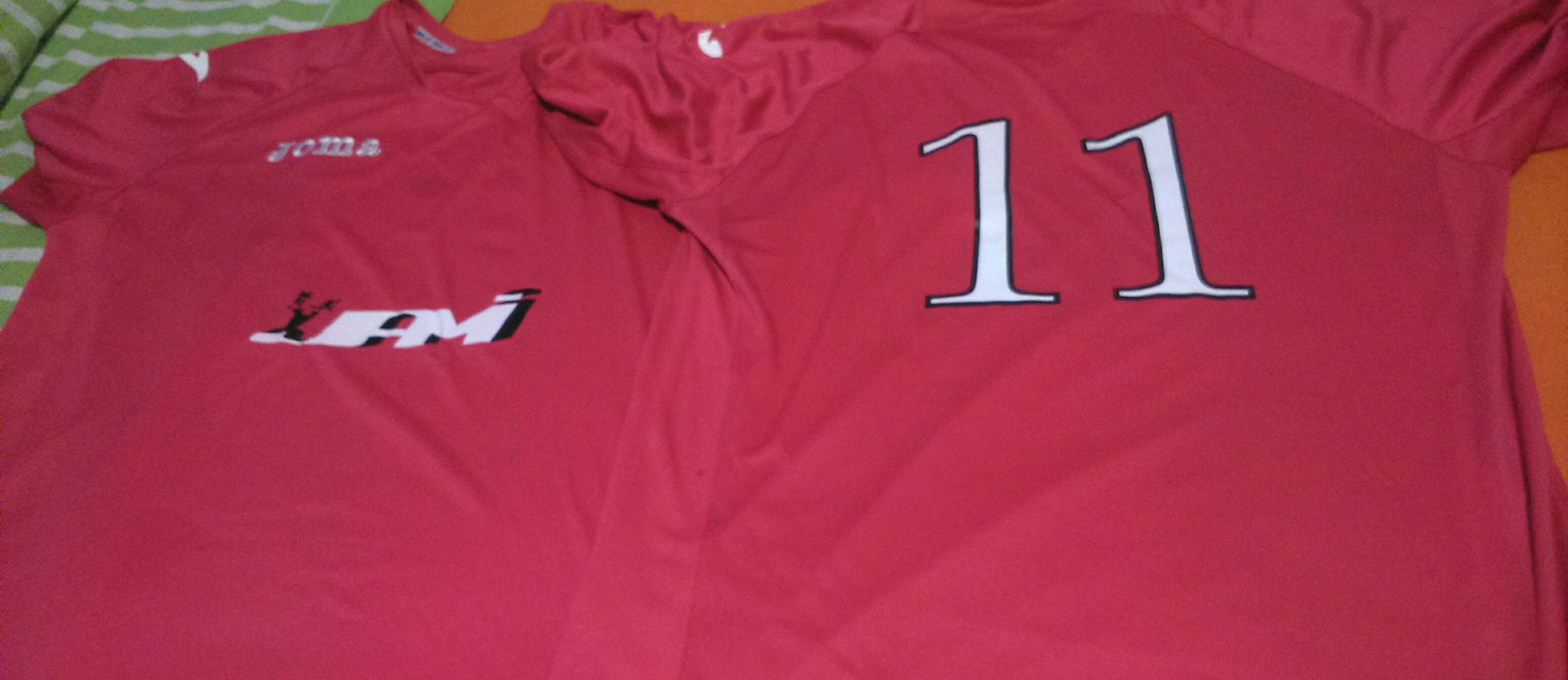 Aquí podréis apreciar el diseño de una equipación de fútbol , con un logotipo publicitario a la aplicación de un genero sintético de camiseta deportiva, como también la aplicaciones de los dorsales de las camisetas. Todo con un material muy resistente para su uso de la actividad.